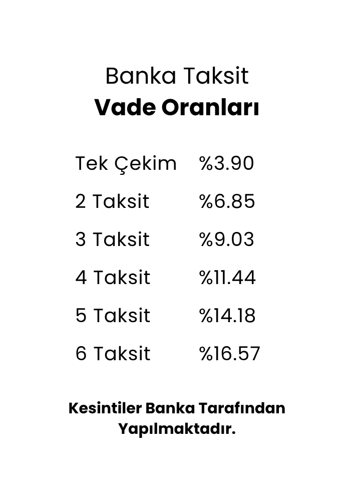Sipariş tutarının %30’u peşin, kalan bakiye ürünleri teslim alacağınız tarihe kadar aylık taksitle ödenmektedir.