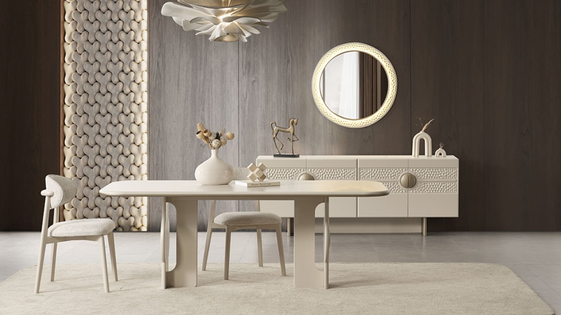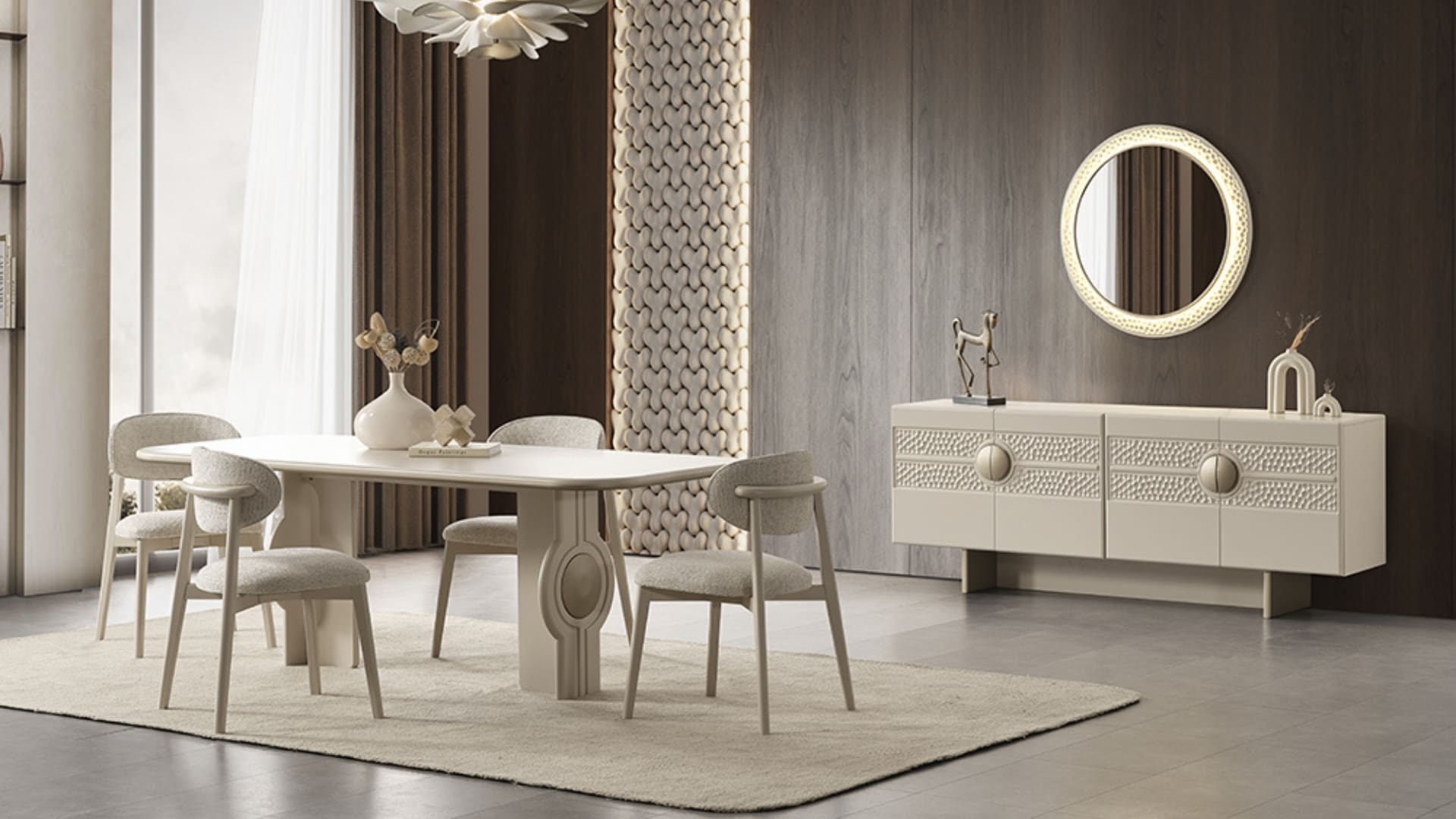 Masa, 4 sandalye, Konsol, Ayna