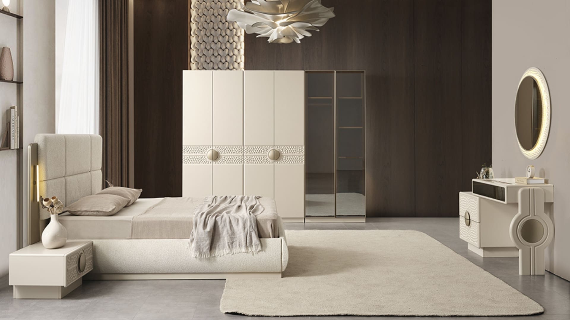 4+2 Dolap, Baza ve başlık, 2 komodin, Şifonyer ve Ayna