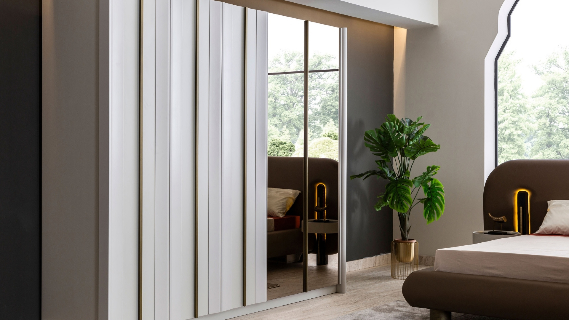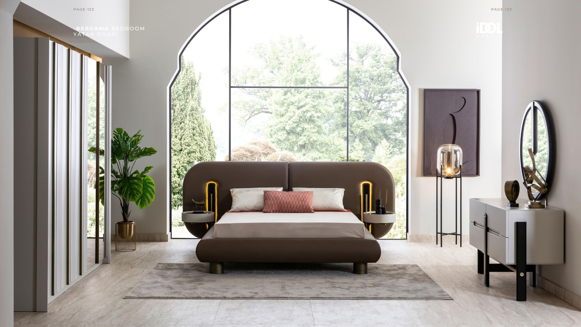 Modern mimarinin geniş perspektifinden ilham alan Yatak Odası, sadeliği zarafetle birleştiriyor. Yüksek tavanlar, büyük pencere biçimleri ve açık tonlu dokular, ferah, huzurlu ve dengeli bir atmosfer yaratıyor. Konforlu bir yaşam alanı tasarlamak için her detay özenle düşünülmüştür