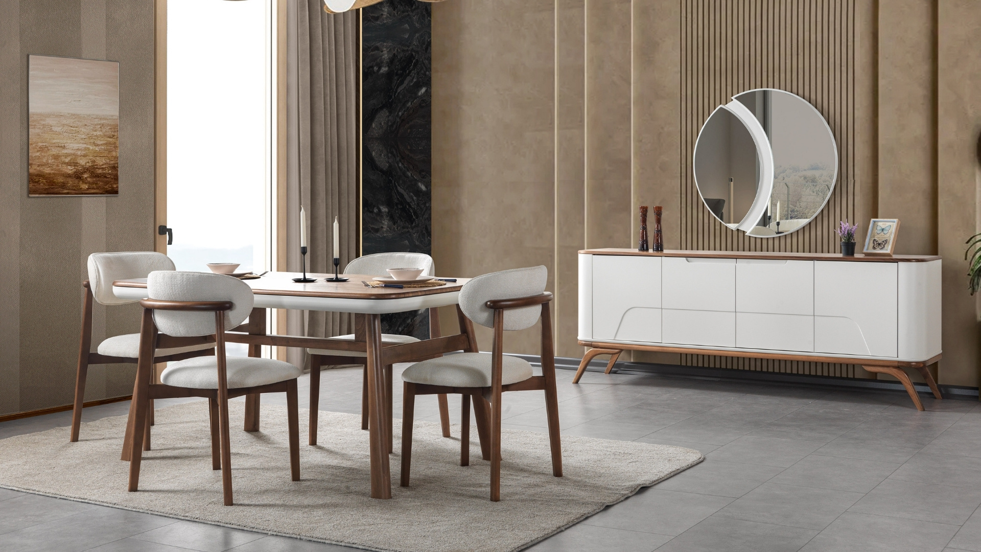 Modern çizgiler, minimal formlar ve doğal renk geçişleri sayesinde villa, rezidans ve geniş aile yaşam alanları için ideal bir yemek odası tasarımı sunar. Her bir parça, İnegölmyhome Mobilyanın atölye ve showroom ekibi tarafından özenle hazırlanır. Tasarımın ana felsefesinde; “sıcak modernlik” ve “zamansız şıklık” öne çıkar.