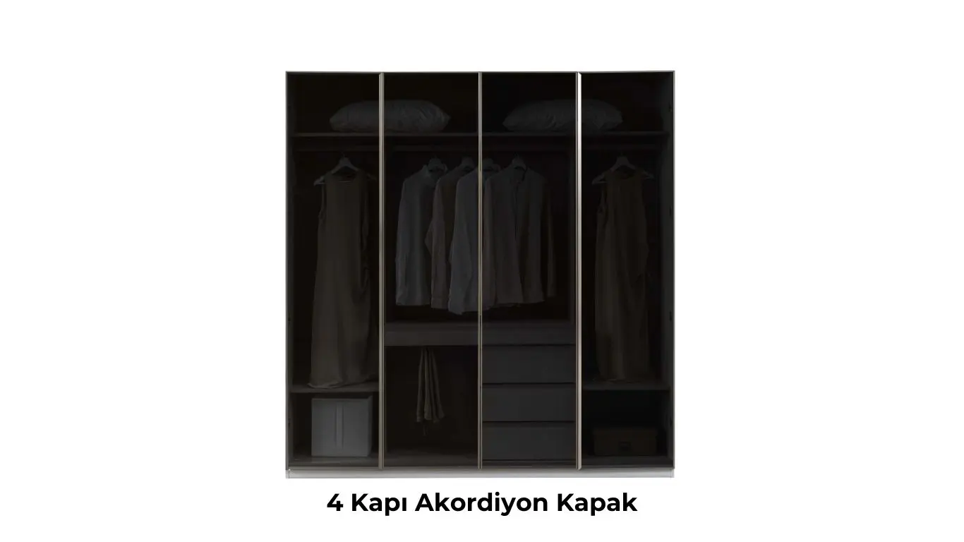 4 Kapılı Akordiyon Cam Kapaklı Dolap; D:60 G:209 Y:220