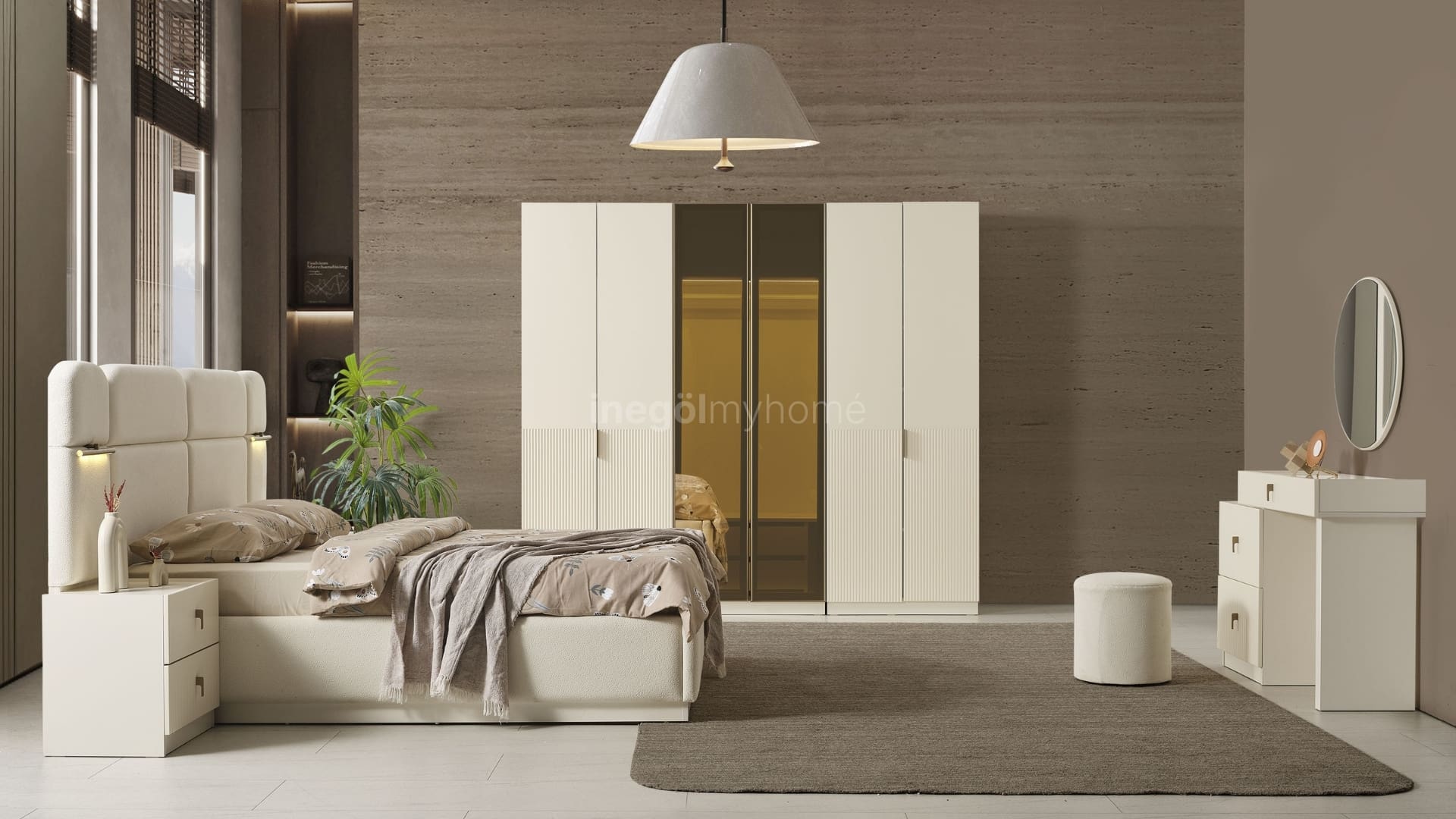 6 Dolap, Baza ve başlık, 2 komodin, Şifonyer ve Ayna