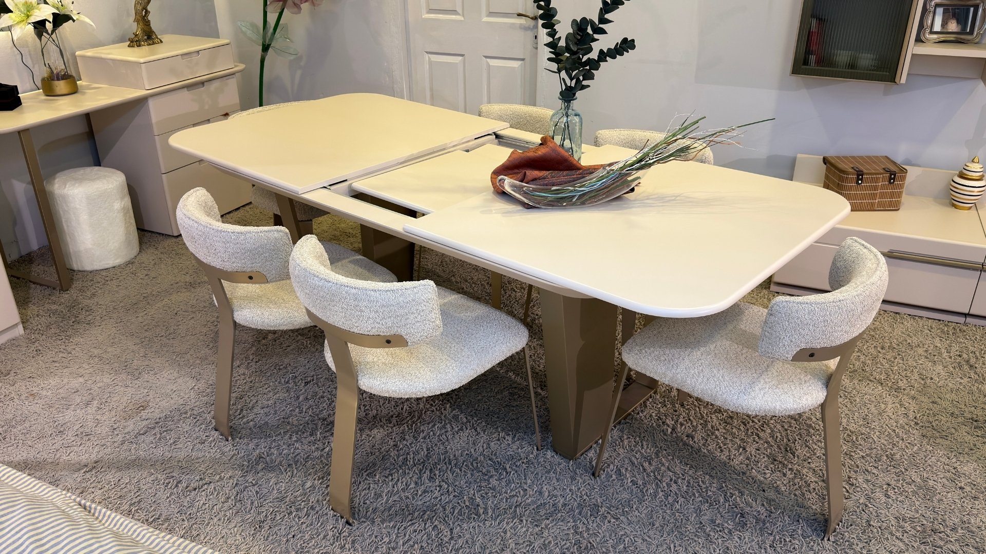 - Takım İçeriği: 1 adet Genişlik: 180 (+40)cm Derinlik: 103cm Yükseklik: 77cm Masa ve 6 Sandalye