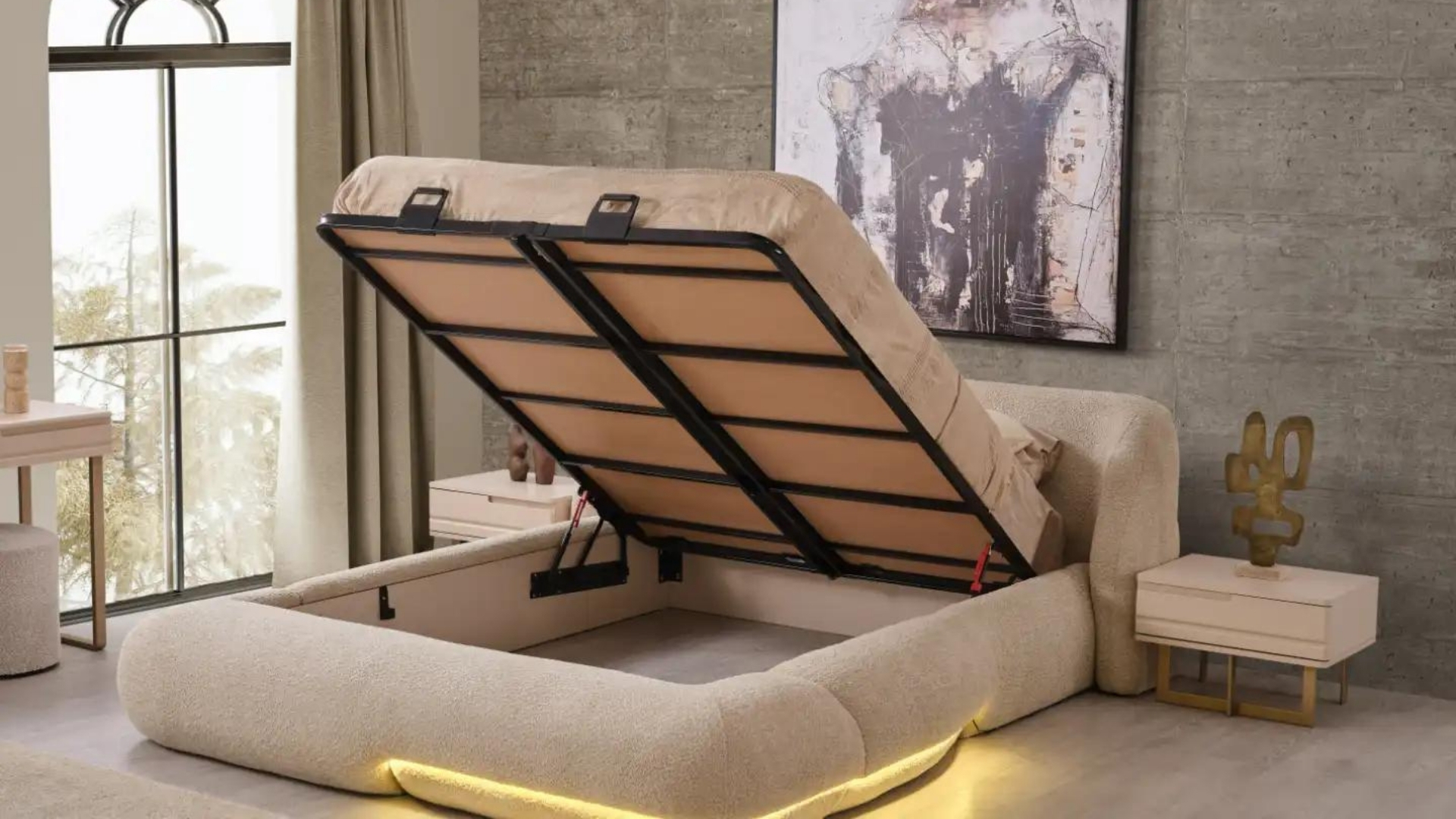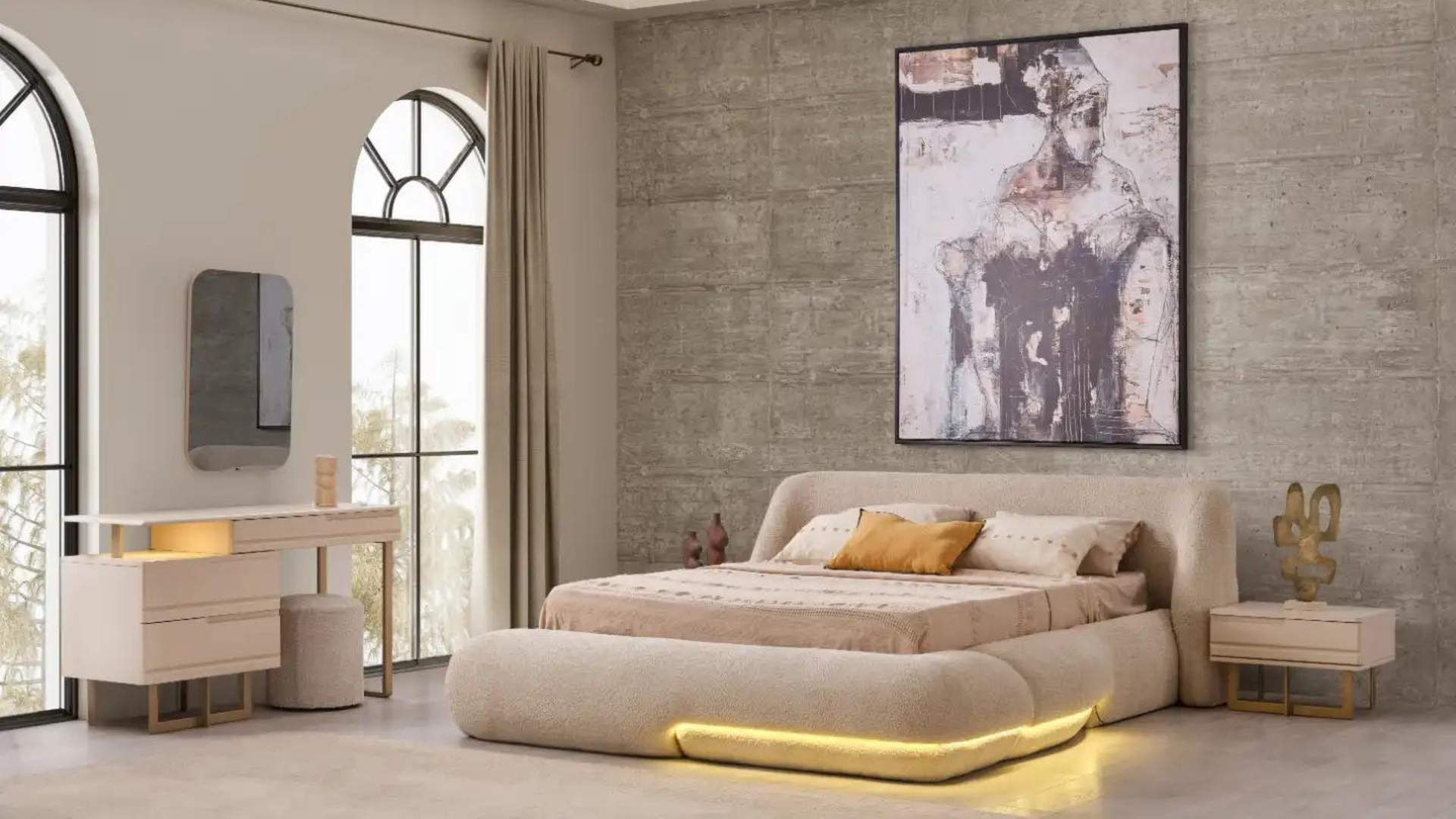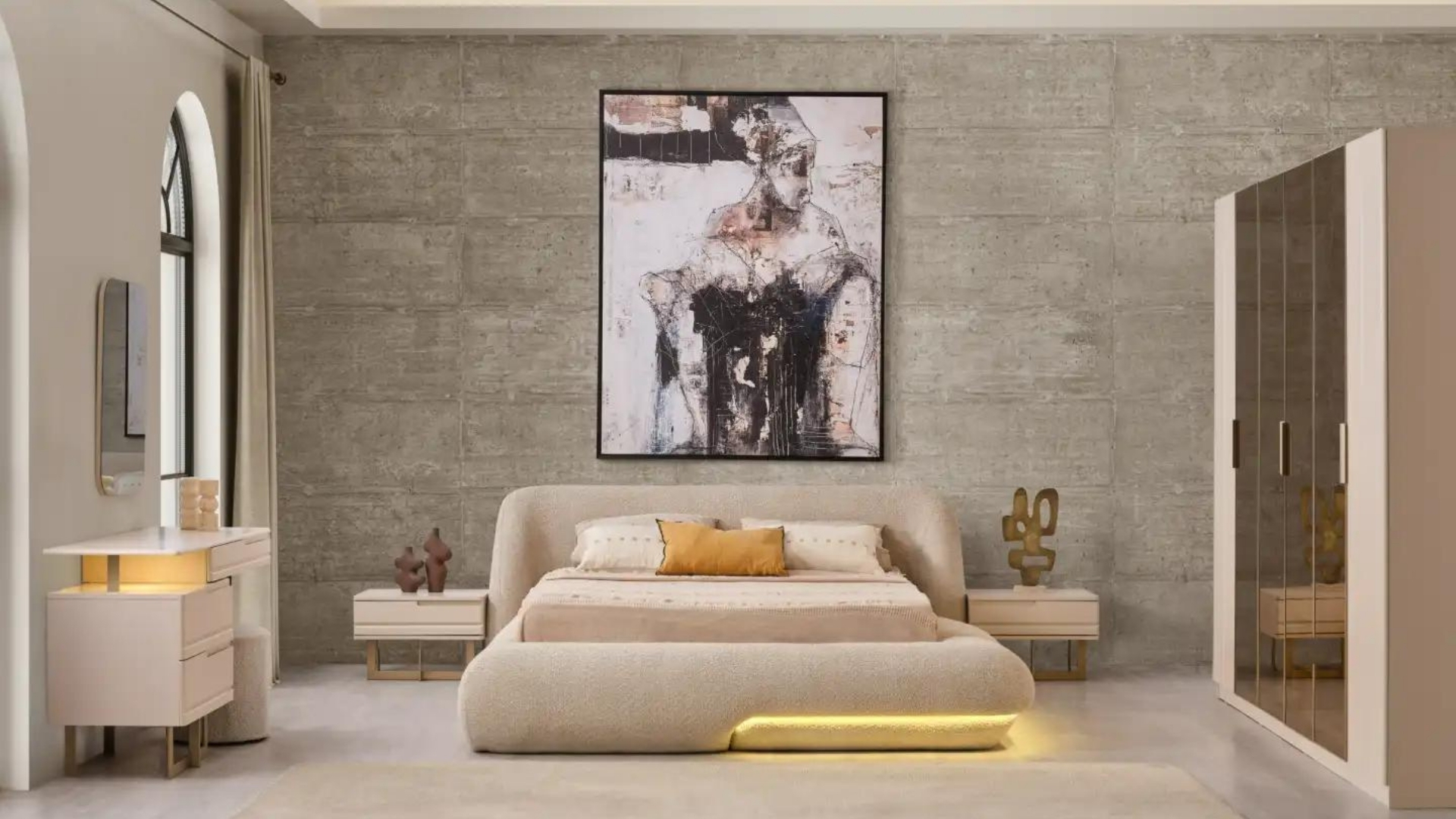 İç mekânlara derinlik katarak, çarpıcı bir görünüm sağlayan reflektif cam uygulaması; evinize yeni bir soluk getiriyor. Uyku alanlarına sakinlik getiren nötr renk paletini, rahatlık hissiyle bütünleşen konforlu detaylarıyla birleştiriyor.